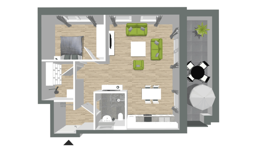Alle Wohnungen sind u.a. mit Fußbodenheizung, pflegeleichten Vinylböden, einer Einbauküche inkl. Geschirrspülmaschine, barrierefreiem Duschbad mit Stütz- und Haltegriffen und elektrischen Rollläden an allen Fenstern ausgestattet.