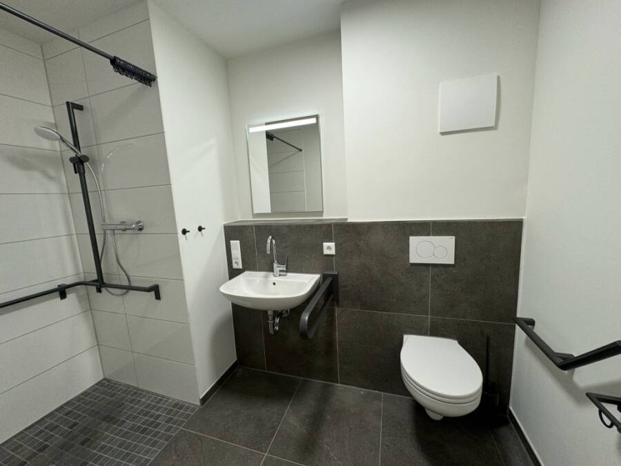 Die Wohneinheit im Staffelgeschoss, erreichbar über einen Personenaufzug, verfügt über eine Wohnfläche von etwa 67,83 m². Die Seniorenwohnung umfasst einen Flur mit Garderobennische, ein Wohnzimmer mit offener Küche inkl. Einbauküche, Schlafzimmer, barrierefreies Bad mit Stütz- und Haltegriffen, Hauswirtschaftsraum mit Waschmaschinenanschluss sowie eine Dachterrasse mit einem schönen Blick auf das Regenrückhaltebecken (in der Wohnfläche zu 25% berücksichtigt). Des Weiteren ist ein Außenstellplatz der Wohnung zugeordnet.