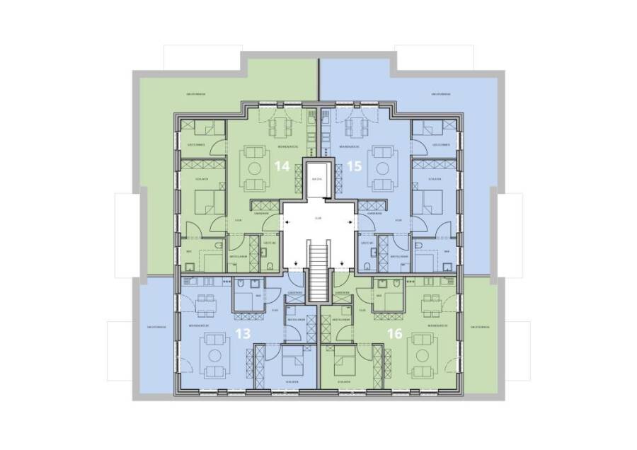 Die Gemeinschaftsflächen und insbesondere der ausgestattete Gemeinschaftsraum im Erdgeschoss stehen allen Bewohnern gleichermaßen zur Verfügung. Die Nutzung ist im Mietpreis bereits inbegriffen.